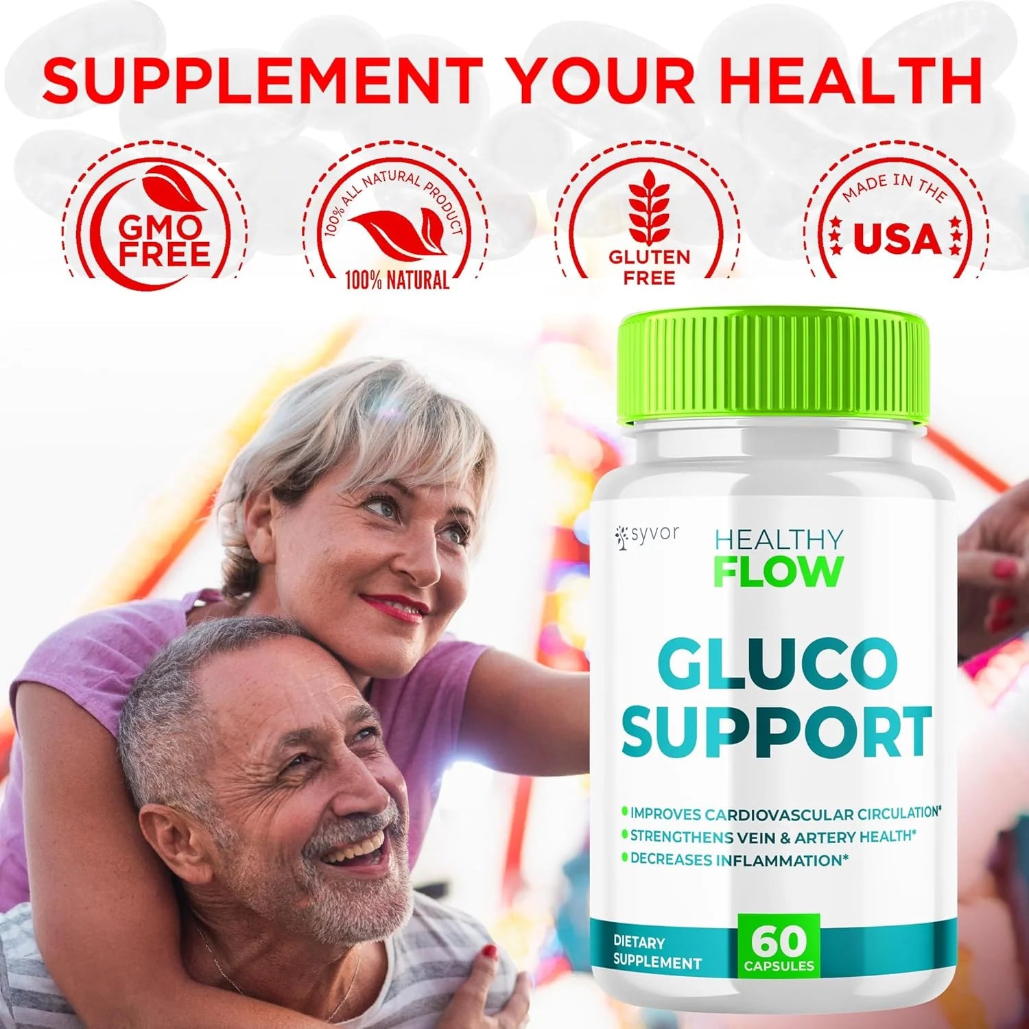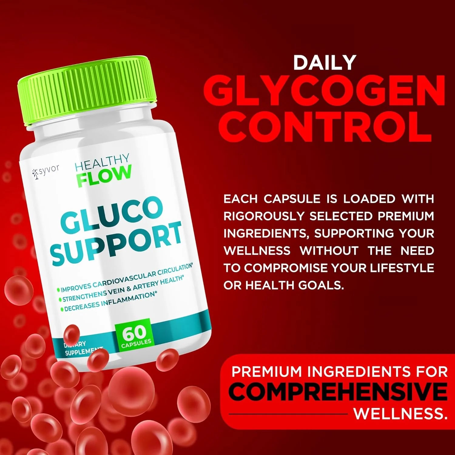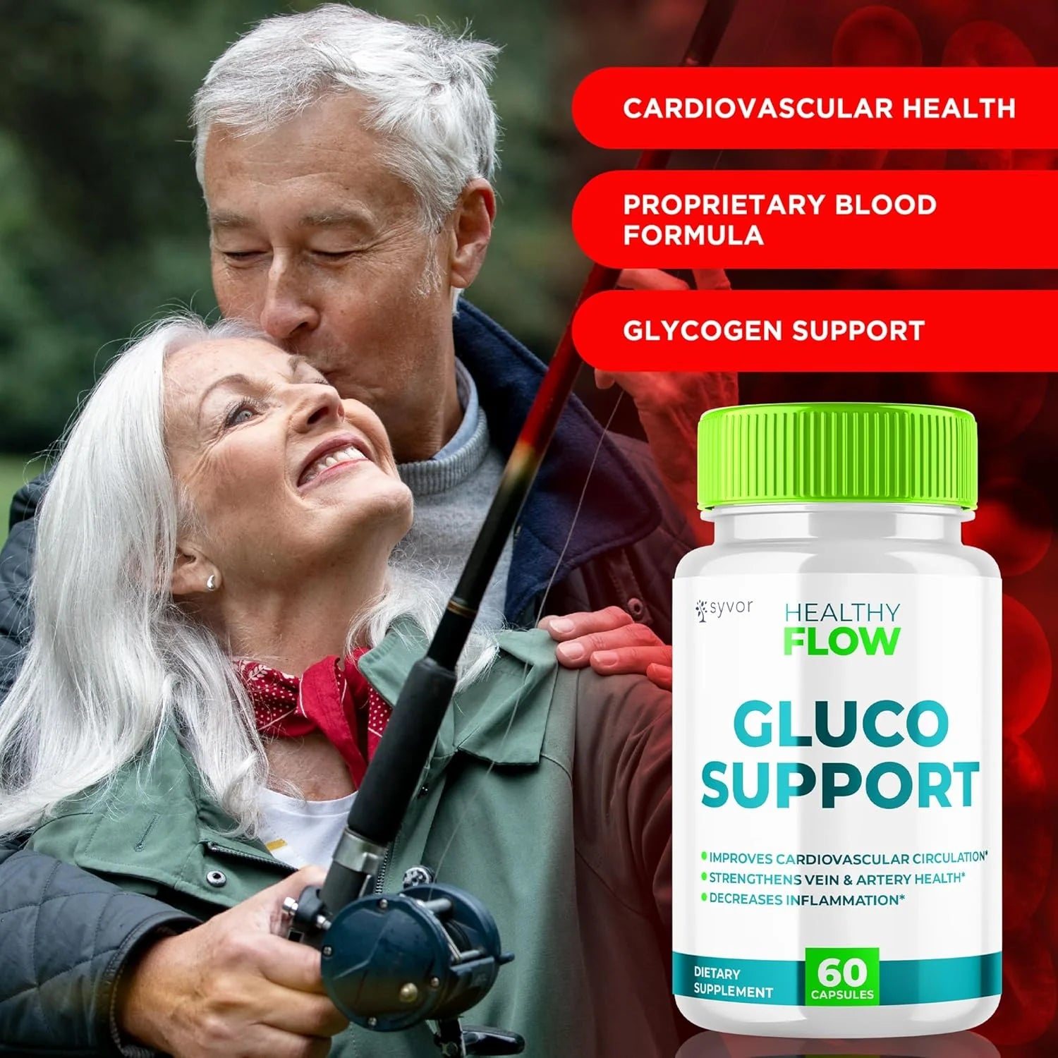 Healthy Flow Capsules - Healthy Flow Gluco Support Supplement Pills - All Natural Healthyflow Glyco Optimizer Vitamin Maximum Strength Glycogen Support to Health and Wellness Once Daily (60 Capsules)