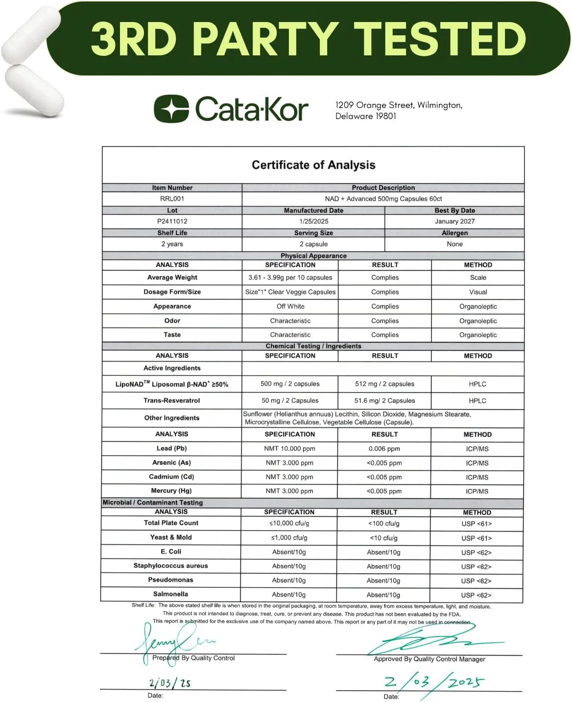 - TESTED IN THE USA: Our NAD, Resveratrol supplement is third-party tested in the USA to ensure its purity and effectiveness. Certificate available upon request. Get back to feeling your best with NAD+ supplement booster today.