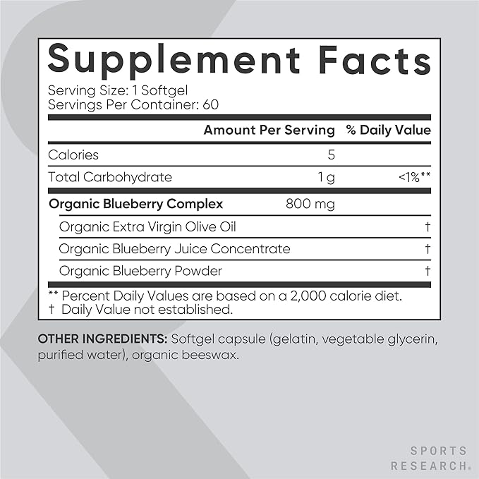 - MOTHER NATURE'S FAVORITE BERRY: Get all the benefits of blueberries without the excessive calories, carbs, or sugar that come with juices and fruit concentrates. Sports Research Blueberry Fruit Complex provides naturally occurring polyphenolic compounds in a single, easy-to-take softgel capsule.